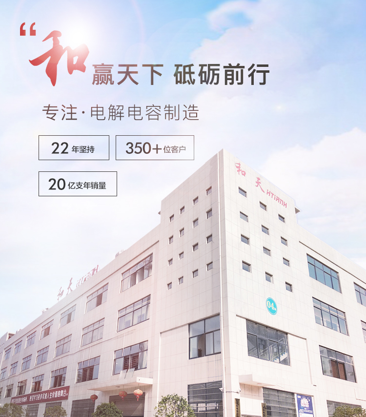 益陽市和天電子有限公司成立于1998年,總部位于湖南省益陽市赫山區龍嶺工業園,現有3個生產基地,總面積達30000平方米,在職員工140余人,工程技術人員50余人,擁有鋁電解電容器自動化生產線196余條,年生產能力35億支。